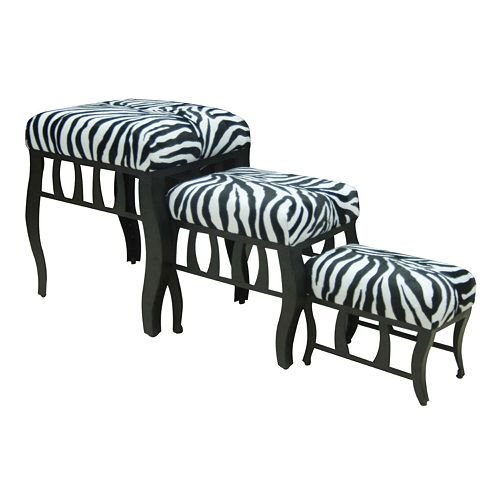 Wild decor. This nesting footstool set will add an adventurous touch to any room. In black/white.