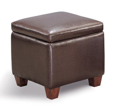 Brown Cube storage ottoman in leather like vinyl Review