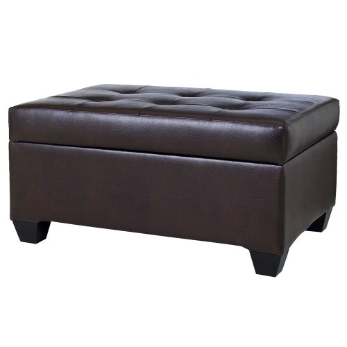 Add seating and storage to any room in your home with this modular style storage ottoman. It has a bonded leather surface with Polyfoam padding fill and slow-close safety hinges. Part of the Modular Seating Collection. Assembly required. Storage dimensions: 32Lx22Wx10D".