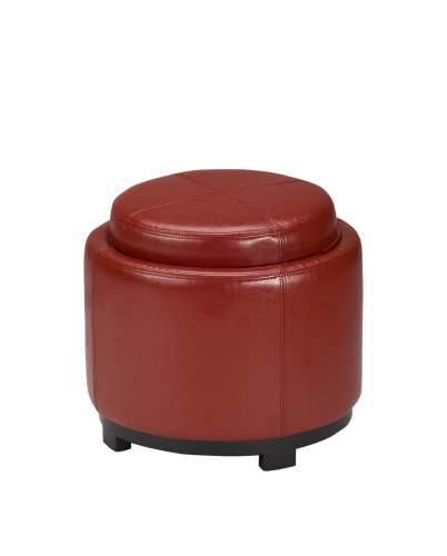 Update your home decor with the Safavieh Bowery Red Leather Round Tray Ottoman. Contemporary style and classic design meet to create this timeless piece. The red bi-cast leather covers a solid, round wood frame. The top flips over to go from stylish red leather footrest to a practical tray, perfect for serving food or drinks. This ottoman is perfect for entertaining guests, or for a quiet night in. The Bowery ottoman arrives fully assembled. This ottoman measures 19-inch long by 19-inch deep by 17-inch high.